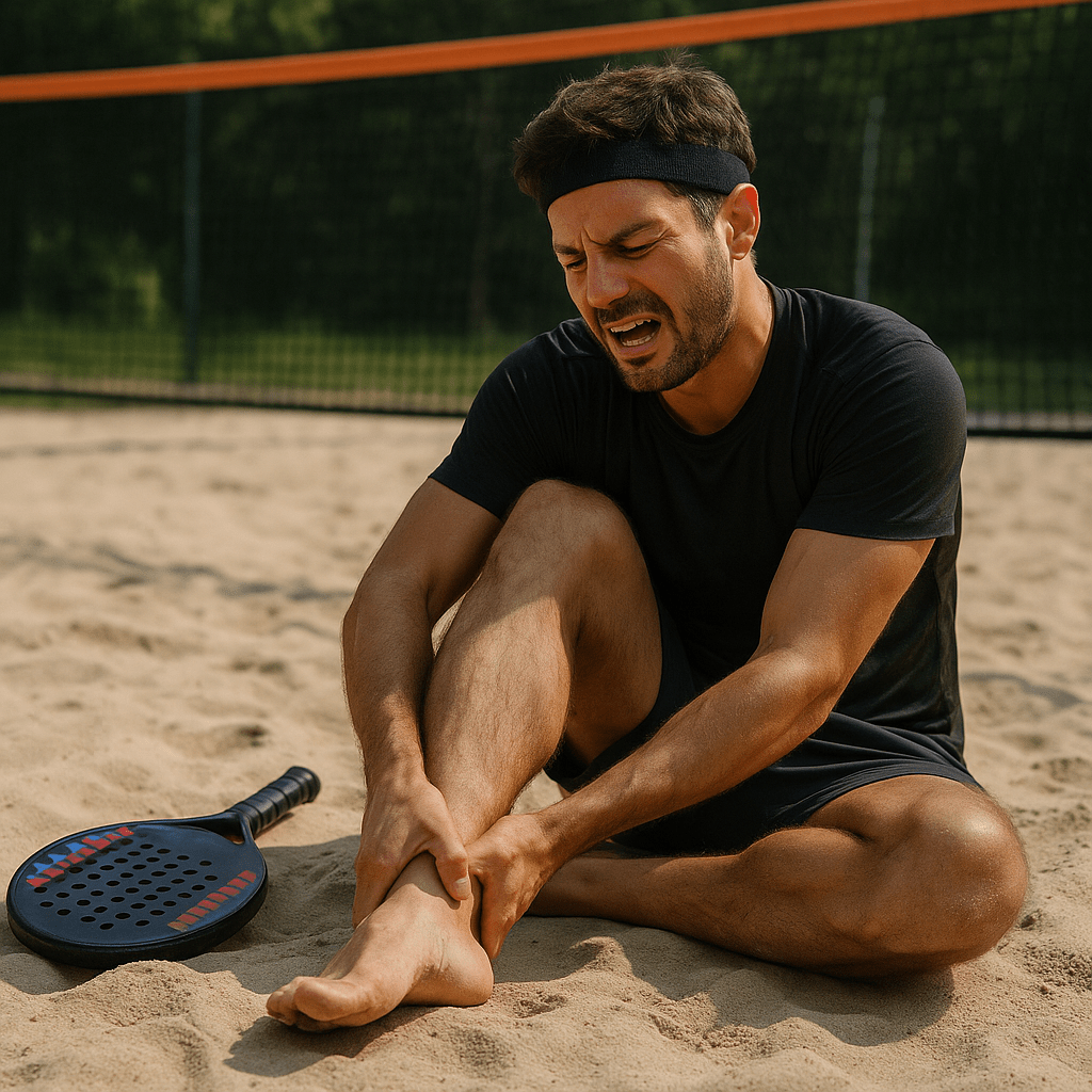- Entorses de tornozelo: a instabilidade do solo arenoso favorece torções, que podem variar de leves até rupturas ligamentares.